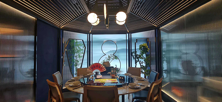 3、環(huán)境氛圍照明設計,這是餐飲空間設計進入到藝術品位的高級階段了。這時候的燈光設計包含了照明和色彩心理學、環(huán)境陳設藝術等多種美學領域,照明燈具的外觀款型也成了燈光設計的重要工作,燈具基本上都需要專屬定制,必須完全符合品牌的調性,定制的燈具也是整個空間用餐氛圍的重要組成部分。通過以光與色彩營造出符合顧客心理需求的氛圍,追求更高的生活品質。品深餐飲設計多年服務的杭幫菜品牌——二小姐的店.觀瀾店,整個照明完全與空間氛圍融為一體,讓顧客流連忘返,嘖嘖驚嘆!