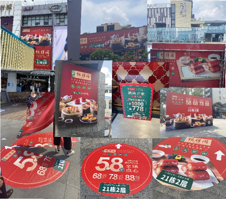 為了讓顧客看到品牌,我們從目標客戶看到的所有能做的觸點出發如:MALL(商場門口品牌墻、商場戶外廣告、地貼、電梯、樓層導視、電梯內廣告、扶梯、吊旗、包柱、燈箱、墻體海報、刀旗、吊幔),網絡(大眾點評、微信、微博、頭條、抖音、小紅書、網站),大眾媒體(公交廣告、地鐵廣告、運貨車、電梯廣告)等等進行宣傳推廣,讓更多潛在客戶看到知道形成品牌記憶。