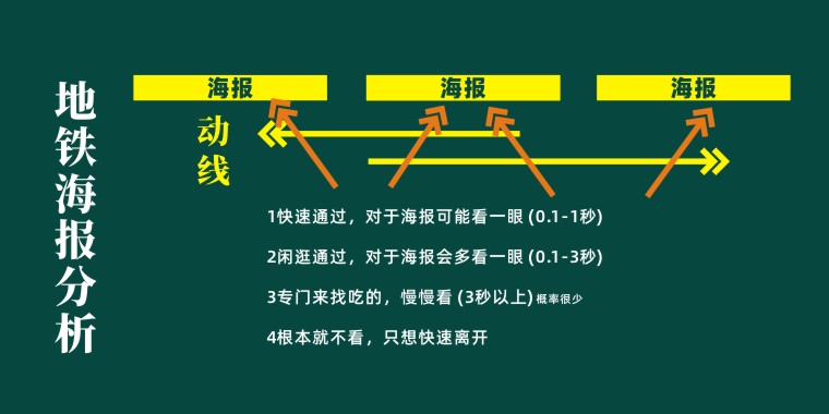 由于都是快速通過,因此我們得出結論:海報要傳播的信息須在1秒之內(nèi)被發(fā)現(xiàn),看明白,被記憶。
