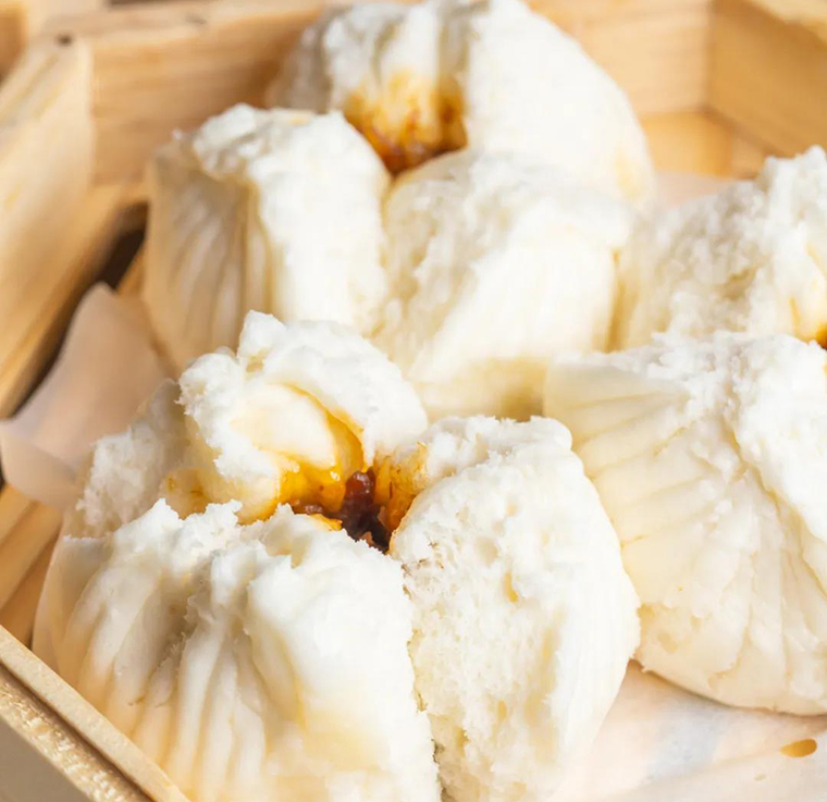 叉燒包,由于是廣東老面制作方法,出品必須要“開口狀”“棉花狀”且要能看見叉燒餡。