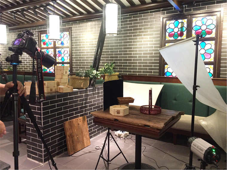 基于此我們制定詳細產(chǎn)品拍攝的方案,決定對產(chǎn)品的主桌面背景用老榆木來搭配,我們認為肌理感強,質(zhì)樸悠久老榆木可承托出點心產(chǎn)品的手工技藝,也暗合品牌悠久的傳承歷史。產(chǎn)品其他背景搭配也選取購置了一些做舊的廣州人的生活器物來搭配,拍攝角度上根據(jù)產(chǎn)品特色及海報表現(xiàn)多角度展開。