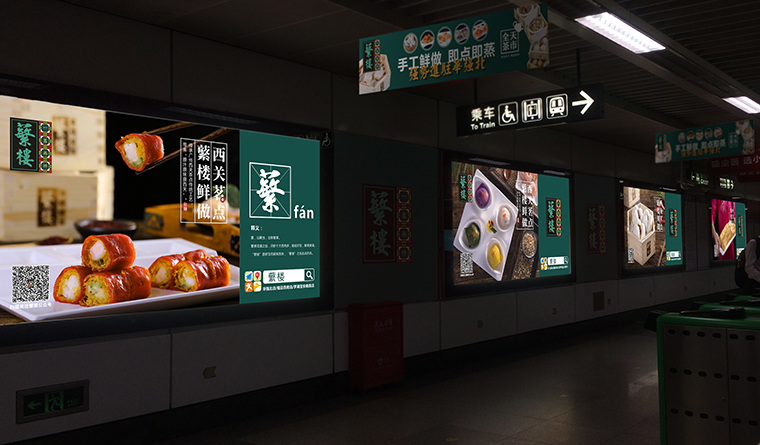 經(jīng)過蘩樓持續(xù)多年,多批次的地鐵站海報設計,品深設計和品牌方一起把一家默默無聞的餐飲品牌曝光到赫赫有名。由此,我們更加堅定的認為:設計工作沒有一勞永逸的方法,只有因地制宜,因時因勢而定的決策。同一個廣告畫面因為數(shù)量、位置、時間、形式的不同,就需要對應不同的設計方案和方法。唯有如此,才能實現(xiàn)品牌傳播的有的放矢,廣告成本的最大化效用。