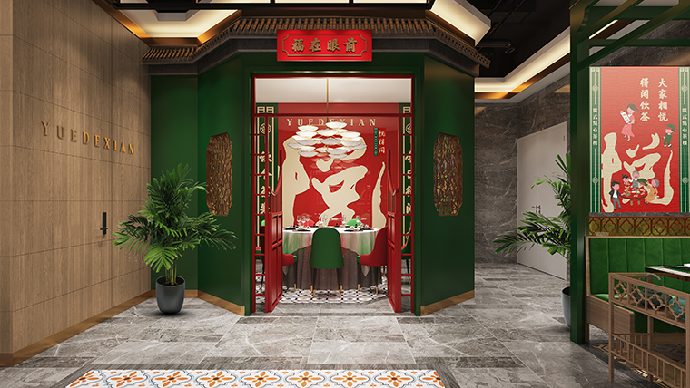 項目概述悅得閑廣式點心茶樓是2019年品深餐飲全案策劃設計的品牌,從品牌命名到品牌VI形象設計,空間裝飾裝修設計,產品圖片拍攝,海報廣告設計,空間軟裝設計全部品深餐飲團隊系統化一體化解決。在2019年11月份首家店位于深圳龍崗上影影城,門店開業以來,獨特鮮明的形象,吸引力廣大食客的高度關注,經營業績持續穩定,營業額每月都過百萬。悅得閑廣式點心茶樓也先后開出了布吉南嶺店、福田馬成廣場店。隨著品牌的持續復制擴張,悅得閑茶樓需要在門店渠道擴大,不僅要布局在傳統800平米左右的街鋪,針對深圳眾多的商業綜合體,需要建立標準的商業綜合體門店,面積約在450平左右,餐位在180個左右,門店的營建周期控制在90天之內,每平方硬裝修造價不超過2500元。此次,品深餐飲設計負責的就是悅得閑品牌首家綜合商場450平標準店的裝飾裝修設計,門店位于坂田街道,吉華路佳華領匯廣場4樓。