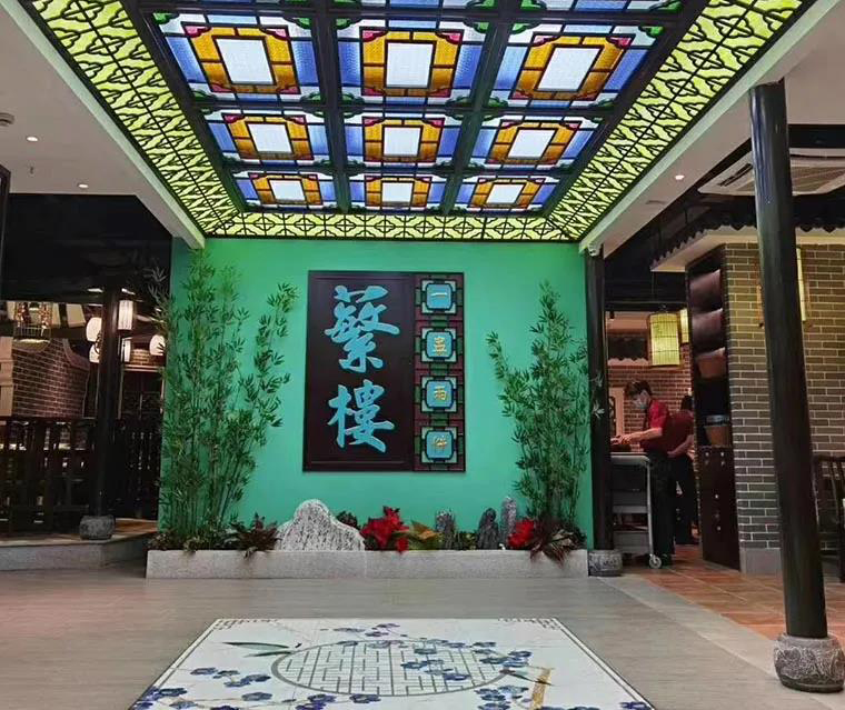 在空間裝飾上,堅持將傳統(tǒng)嶺南建筑常用的鑊耳山墻、滿洲窗、廣州老建筑的趟門,具有鮮明地域特色的西關大屋,廣府人最熟悉的雞公欖,在空間中靈活使用,達到了一種步移景異,一步一景的空間效果。